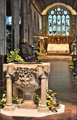 The large and elaborate font is Norman and dates to the twelfth century while the three, late fifteenth century misericords have at some point been taken from their original stalls and fitted into the lectern. The relics of St. Petroc are kept in an ivory casket which dates to the twelfth century. They were at one time stolen and taken to Brittany by an Augustinian monk but were later recovered by Prior Roger of Bodmin, who was aided in his enterprise by King Henry II. There are a number of interesting monuments, most notably that of Prior Vivian which was formerly in the Priory Church.