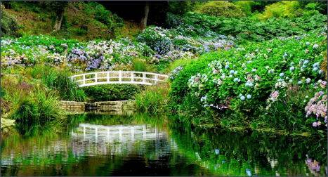 Subtropical trees and shrubs such as Japanese locquat, weeping Mexican cypress and a weeping swamp cypress grow amongst open glades carpeted with colourful wild flowers. Glendurgan contains various species of such favourites as rhododendron, azaleas, magnolias, camellias and hydrangeas, as well as persimmon, oleasters and aloes. Giant rhubarb plants flourish in the jungle-like lower valley while spiky arid plants bask on the sunny upper slopes.