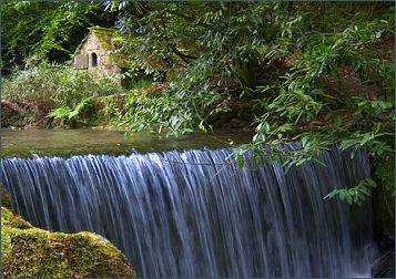 wellhouse dates from the late fifteenth century, and was restored by Sir Charles Graves Sawle in 1922. A Gothic style archway leads inside, the walls and roof are covered in green lichen. Surrounded by trees and rhododendron bushes, a small waterfall on the river is situated in front of the wellhouse. The water is often milky white, as it is coloured by the local china clay.