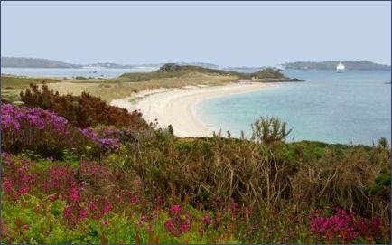 Measuring just two and half miles long and a mile wide, Tresco is one of the five inhabited island which, together with the 140 or so islands, islets and rocks, form the Isles of Scilly. The island's scenery is varied and includes rugged granite outcrops, heathland on the exposed north coast and mainly shell beaches in the east and south. There are bathing beaches at Pentle Bay, Appletree Bay, Gimble Porth, Hotel Beach, Green Porth, Gimble Porth, Rushy Porth.